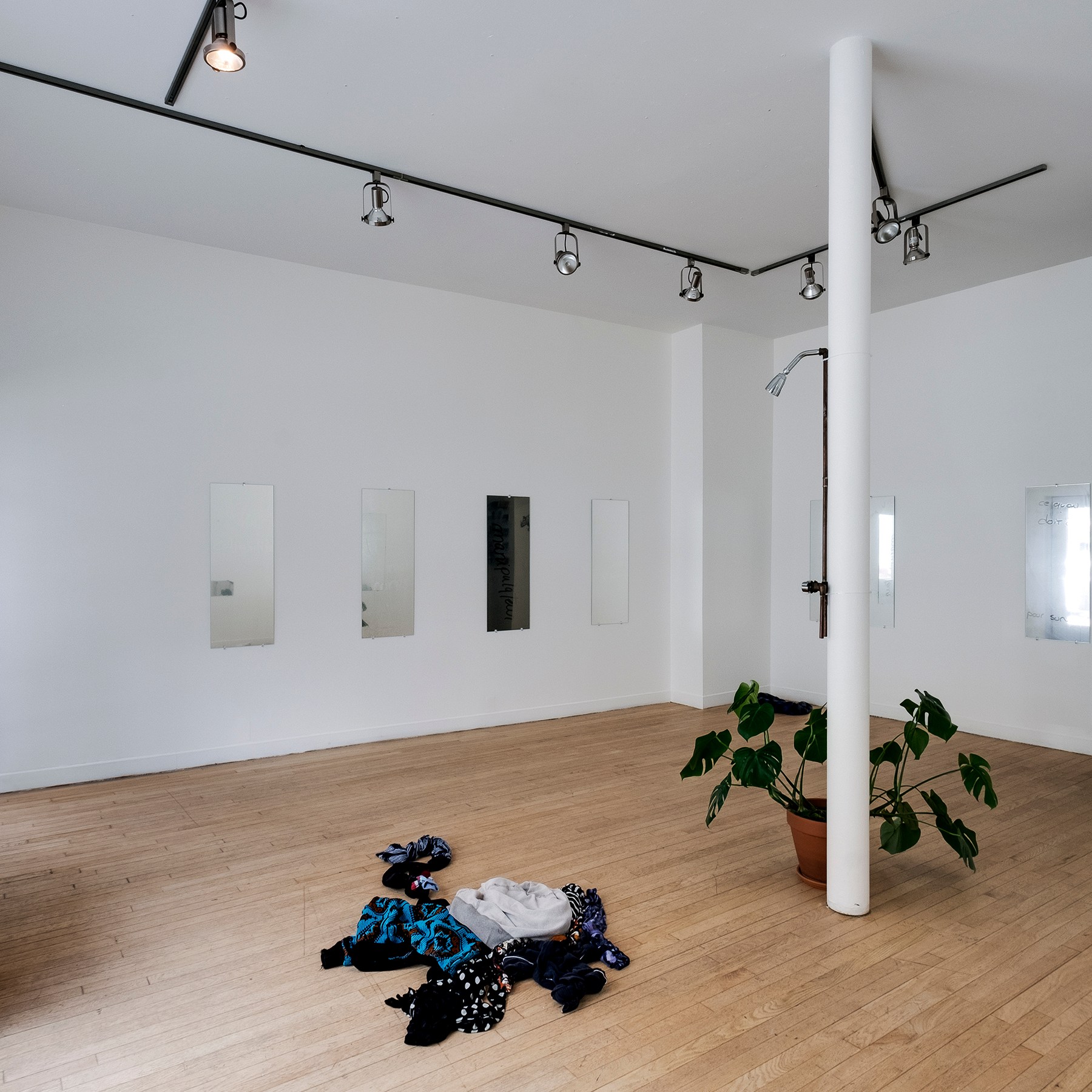 Après plusieurs années de pratique avec la communauté, l’artiste propose une relecture de vécus d’hommes et de femmes qui l’ont touchée au cours de ses projets. Pour l’occasion, la galerie devient un huis clos inspiré de la salle des douches de divers refuges pour sans-abris que l’artiste a visités dans sa recherche. Bélanger y offre une série de miroirs sérigraphiés présentant des réponses à la question « Que voudrais-tu laisser derrière toi aujourd’hui? » qu’elle a recueillies au gré de ses rencontres. Le 9 mai 2019, l’artiste présente une performance devant public au cours de laquelle, en interaction avec ses œuvres, elle se déshabille.